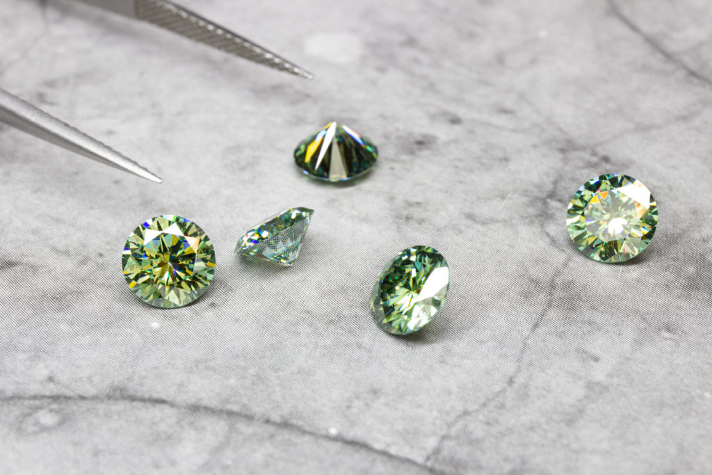 По своему внешнему виду муассанит не уступает бриллиантам очень хорошего качества. По светоотражению и преломлению эти камни даже превосходят бриллиантовые экземпляры. Из-за внешнего сходства с бриллиантами, а по цене значительно уступающими им, муассаниты часто используются звездами при проведении крупных мероприятий с большим количеством присутствующих гостей. Потеря украшения с искусственным аналогом бриллианта не так накладна, а выглядят они как природные камни. Даже опытные ювелиры не сразу смогут отличить муассанит от бриллианта. Но есть одна хитрость, которая может помочь при определении, какой камень у вас на руках. Если нагреть муассанит до температуры свыше 65 градусов по Цельсию, то он начинает изменять свою окраску. А насыщенность оттенков зависит от температуры. Кроме того, электропроводность муассанита более высока чем у алмаза и этим тоже можно воспользоваться при сличении камней. Однако измерение электропроводности требует довольно сложного оборудования и отлаженных методик. Обычно используется четырехзондовый метод измерения этого параметра.