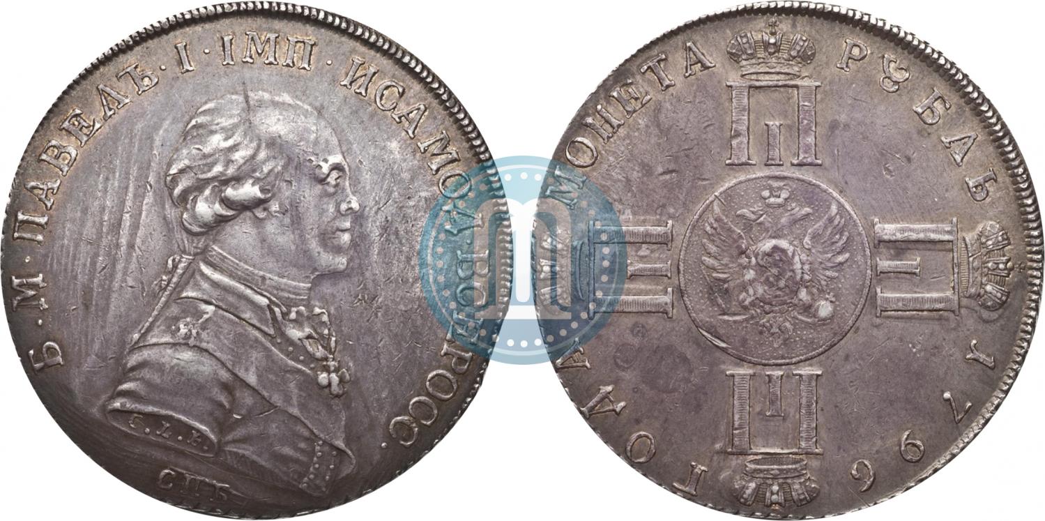 Со слов историков тех времен, император не очень любил свою внешность и отрицательно относился к своим изображениям. Но все же был сделан пробный выпуск рубля из серебра с портретом Павла. Разработкой штемпеля занимался лично Карл Леберехт, который был специалистом Петербургского монетного двора по медалям и монетам, а также академиком Императорской Академии искусств. Свое участие в оформлении этого изделия Леберехт решил подтвердить надписью на аверсе монеты под плечом профиля императора в виде букв «CLF». Самодержец изображен в профиль с поворотом головы вправо. Все надписи выполнены на старославянском языке. Монету чеканили в Санкт-Петербурге, что подтверждалось буквами «С.П.Б.». Было выпущено несколько малых серий монет из серебра 750 пробы, а одну из серий отчеканили штемпелем с трещиной. В связи с этим можно встретить экземпляры с выпуклой полоской, видимой невооруженным взглядом. Диаметр монеты равен 39 мм, а вес 24 граммам. В настоящее время эти монеты стали большой редкостью и имеют большую стоимость. На торгах начала ноября 2025 года «1 рубль 1796 года СПБ-CLF Пробный» был продан за 3 миллиона 100 тысяч рублей.