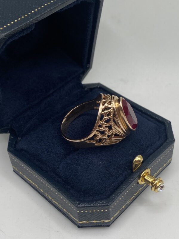 Золотое кольцо СССР 583 пробы с рубином(корунд). Размер кольца-19. Общий вес- 8,75гр. Отличное состояние. Торга, пересылки и доставки нет. Арт:159