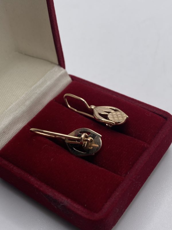 Золотые серьги 585 пробы. Длина- 2,3см, ширина- 9мм. Вес-3,15гр.
